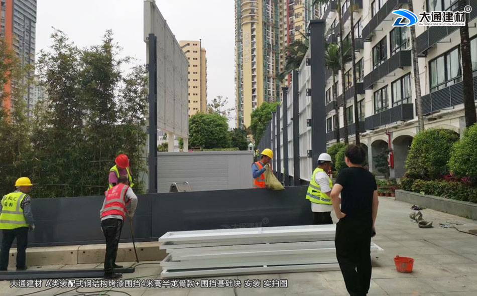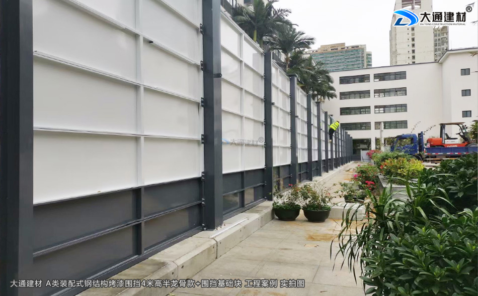 大通建材 A類裝配式鋼結(jié)構(gòu)烤漆圍擋半龍骨4米高定制款+圍擋基礎(chǔ)塊 現(xiàn)場安裝
