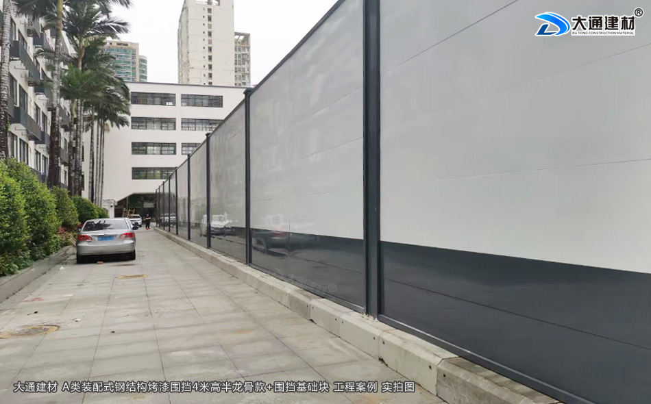 大通建材A類裝配式圍擋4米高烤漆款 配送到深圳羅湖工程項目施工現(xiàn)場