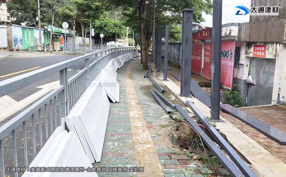 深圳市大通建材裝配式鋼圍擋全龍骨A款 采用裝配式+鋼結(jié)構(gòu)+全龍骨 烤漆鋼板構(gòu)造 安全穩(wěn)固 抗風(fēng)力強 美觀環(huán)保 經(jīng)久耐用,應(yīng)用于廣東省深圳市大鵬新區(qū)楊梅坑改造項目工程中,以下展示的圍擋圖片是大通建材裝配式鋼圍擋全龍骨A款在該項目部分位置的實拍圖