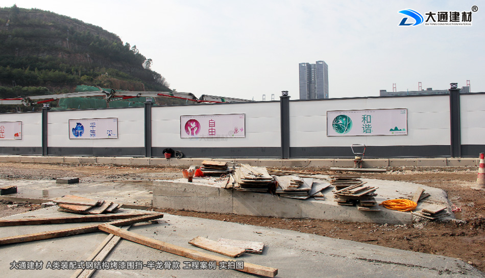 廣東省深圳市南山區前海路的棉山路至媽彎大道段工程項目使用了大通建材生產銷售的A類烤漆鋼圍擋2.5米高半龍骨款、圍擋基礎塊、標準工地大門等產品