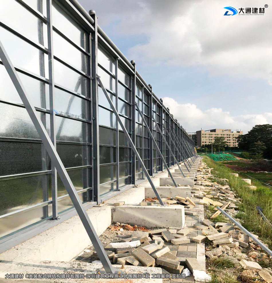 深圳市大通建材生產的C類裝配式鍍鋅鋼結構圍擋4米高定制款,把深圳市龍華區(qū)建筑工程施工現(xiàn)場圍起來,為施工安全保駕護航。