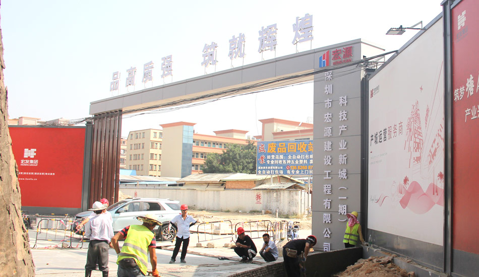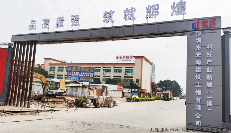深圳市大通建材有限公司標準工地大門-深圳宏源建設項目工程施工工地大門案例
