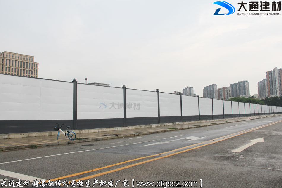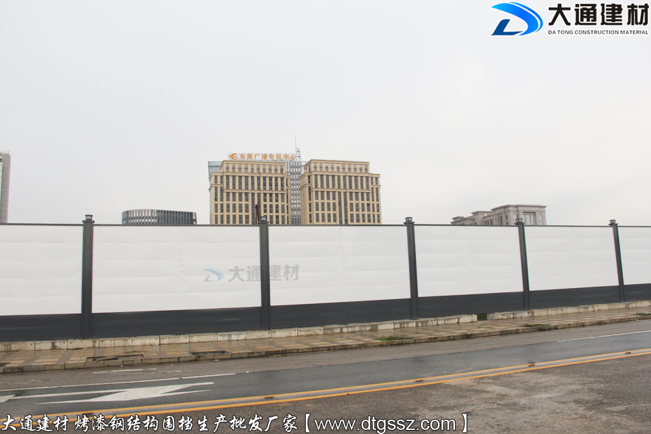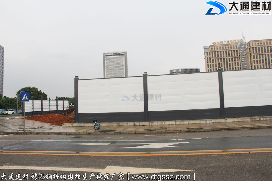 東莞廣播電視中心附近施工工程項目使用大通建材根據(jù)用戶的需求定制化生產(chǎn)的4米高的鋼結(jié)構(gòu)圍擋,這款圍擋是大通建材推出的性價比很高的A類烤漆圍擋半龍骨款,不僅具有美觀環(huán)保的特點,還拆裝方便、安全穩(wěn)固、經(jīng)久耐用,適合地產(chǎn)工程項目、市政建設(shè)施工、道路改造等工程使用。