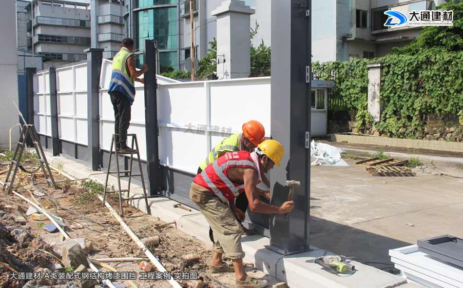 深圳大通建材生產(chǎn)符合惠州市政新標(biāo)準(zhǔn)的惠州圍擋A款,這是一款新型裝配式鋼結(jié)構(gòu)烤漆圍擋,拆裝方便、抗風(fēng)力強(qiáng)、安全性高,已廣泛應(yīng)用于惠州各地區(qū)的房地產(chǎn)建設(shè)工程項(xiàng)目中。