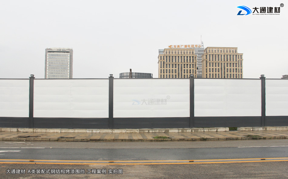 大通建材A類裝配式烤漆鋼結(jié)構(gòu)圍擋4米高定制款 適合對圍擋高度有特殊要求的工程項目使用,安裝地點位于廣東省東莞市南城區(qū)東莞廣播電視中心附近,圍擋安裝項目全長680米。