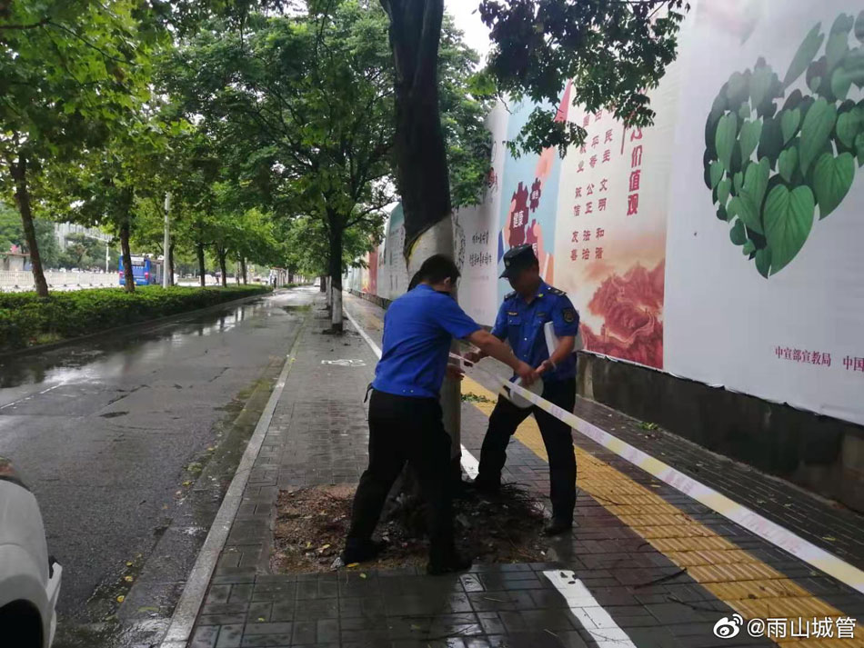 文章標題:馬鞍山市雨山城管“迎戰”臺風 全面排查路面施工圍擋安全隱患