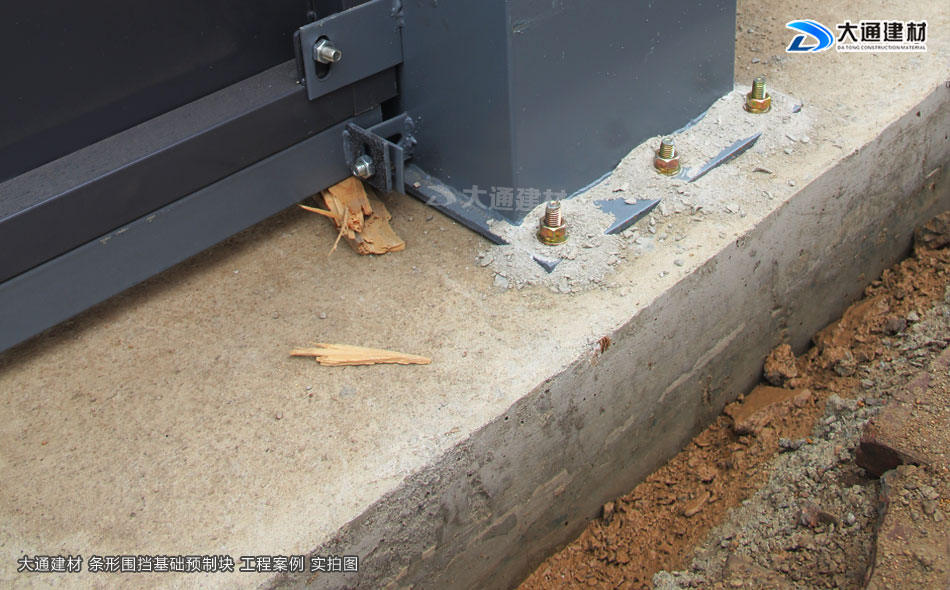 上圖展示的是鋼結(jié)構(gòu)圍擋立柱與條形圍擋基礎(chǔ)預制塊 安裝效果