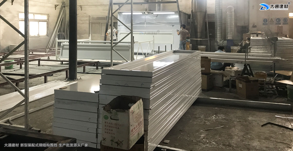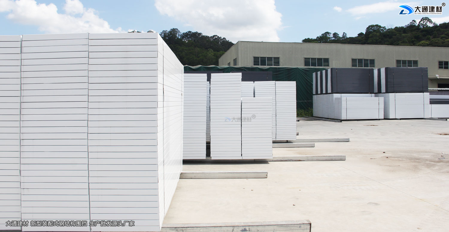 【圍擋入庫】是將生產完成的圍擋進行入庫,進入發貨狀態,在經過前面四種工藝材料切割、墻板折彎、立柱焊接、烤漆后,圍擋已幾乎完成,這時就需要將生產好的配件進行入庫存放,大通建材在生產產區旁新建了占地面面積約5000平米的發貨廠區,達到客戶下單即可安排發貨效率。