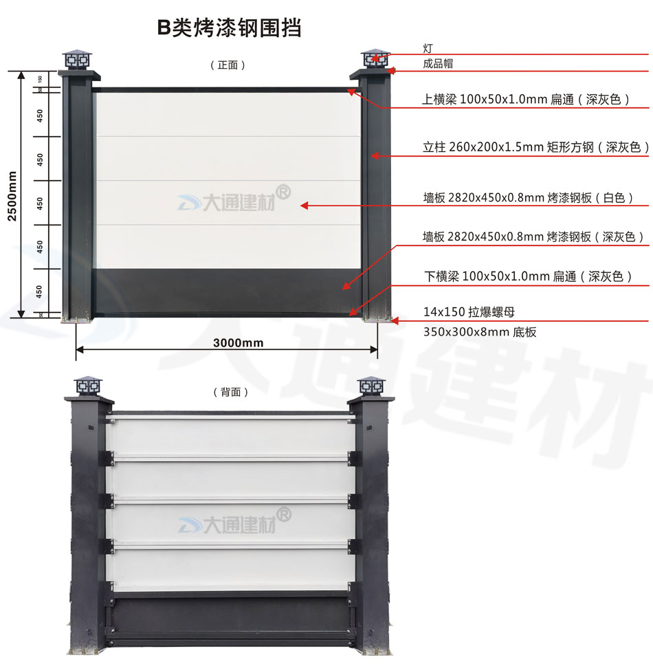 深圳市大通建材工程施工圍擋 B類裝配式鋼圍擋-烤漆款 產品特點