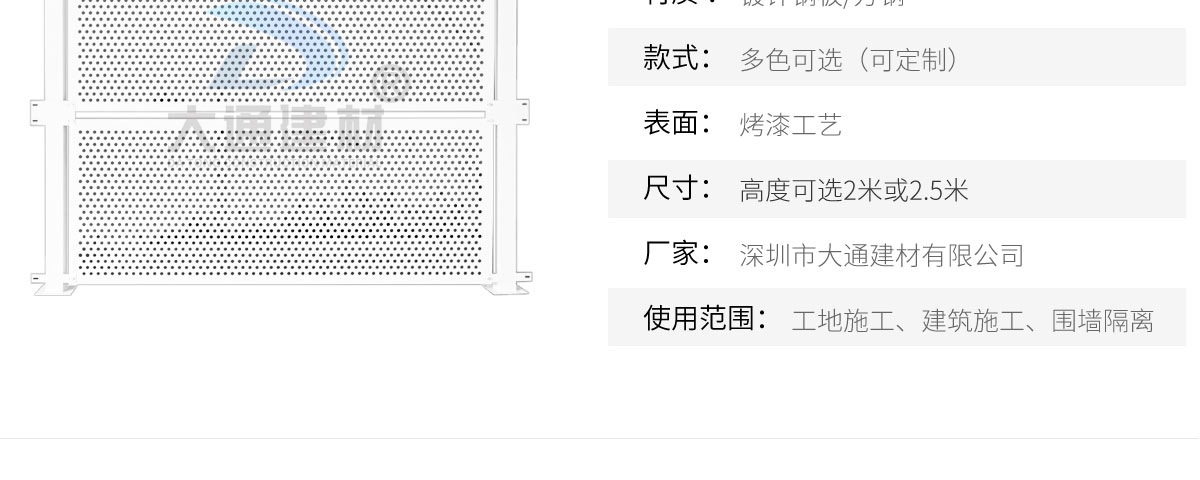 深圳市大通建材有限公司是一家集研發、生產、安裝、服務于一體的綜合性圍擋廠家,公司主營產品鋼圍擋、鋼結構圍擋、PVC圍擋、施工圍擋、市政圍擋、工地圍擋、烤漆鋼圍擋,官網:http://m.miserable.cn/ ,銷售熱線:138 2656 2448